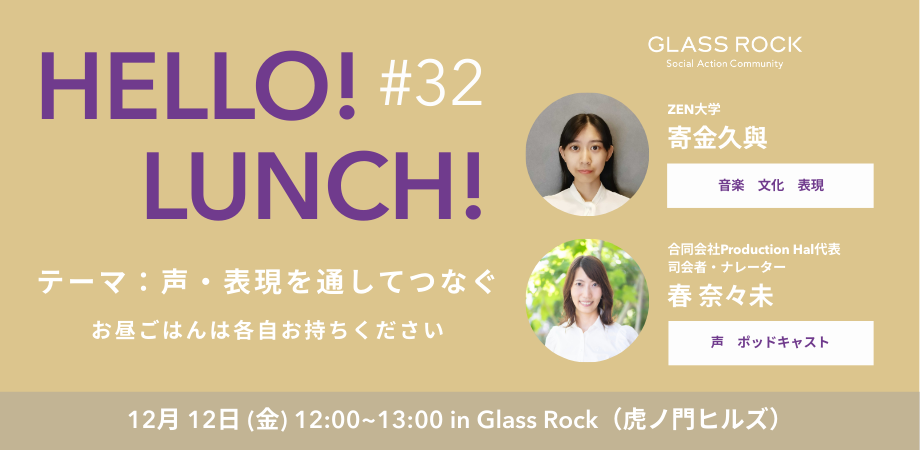 声をはじめとしたアナログ表現に興味がある方はもちろん、様々な活動について聞いてみたいという方も、ランチをお持ちいただき、お二人を囲んでリラックスした雰囲気の中で交流しませんか?皆さまのご参加をお待ちしております!